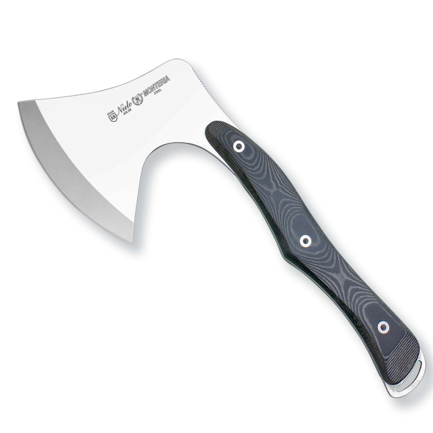 Το τσεκούρι Monteria  από την εταιρία Miguel Nieto είναι σχεδιασμένο για σκληρή χρήση. Διαθέτει εργονομική λαβή κατασκευασμένη από ειδικό μείγμα ρητίνης πεπιεσμένου γυαλιού για το ελάχιστο βάρος και ταυτόχρονα να μην γλυστράει ποτέ απο το χέρι. Η λεπίδα του κατασκευασμένη από υψηλής ποιότητας ανοξείδωτο χάλυβα μόνο σε AN-58 για να αντιστέκεται στις διαβρώσεις.Περιλαμβάνει δερμάτινη  θήκη σαν κι αυτές που μόνο η MIGUEL NIETO παραδίδει.