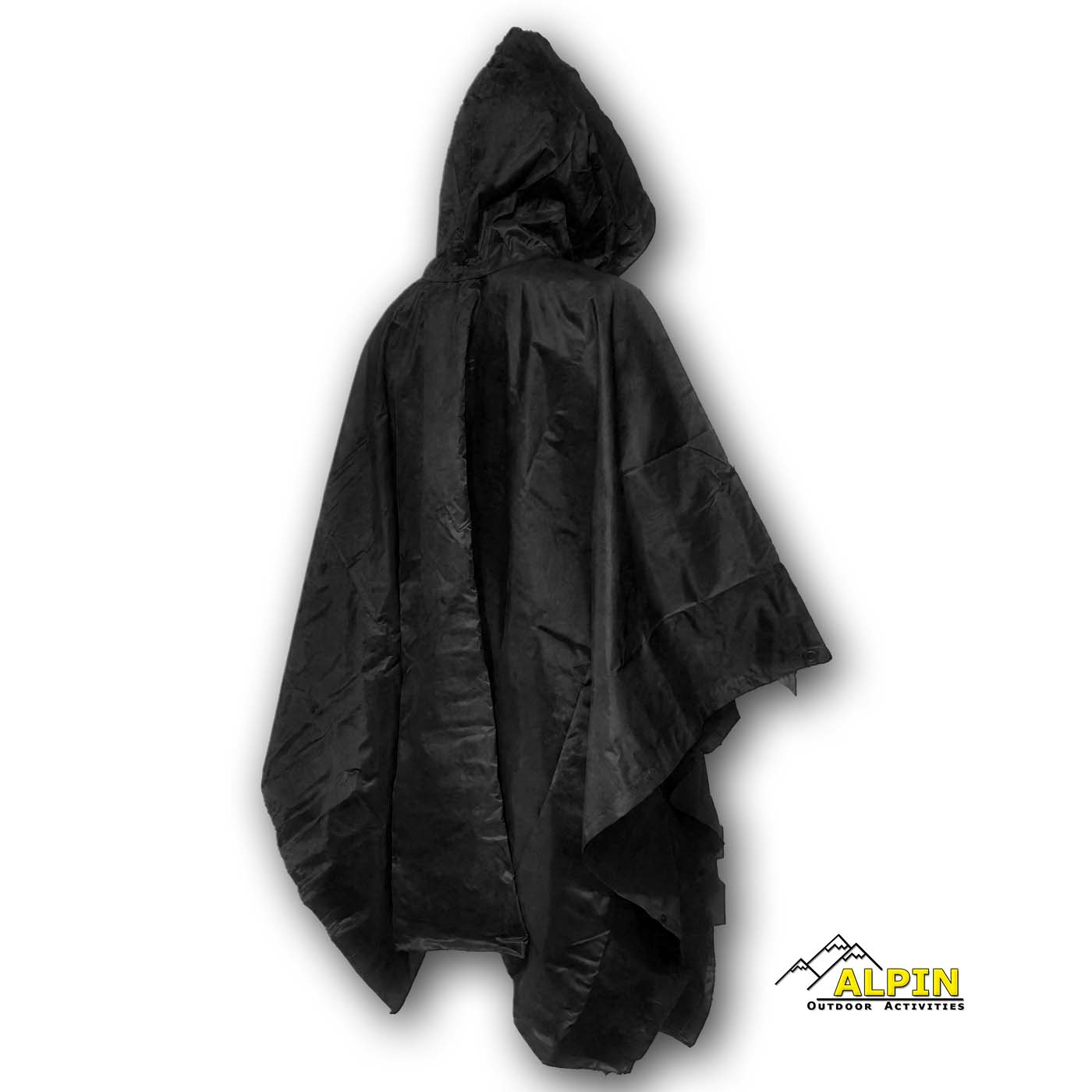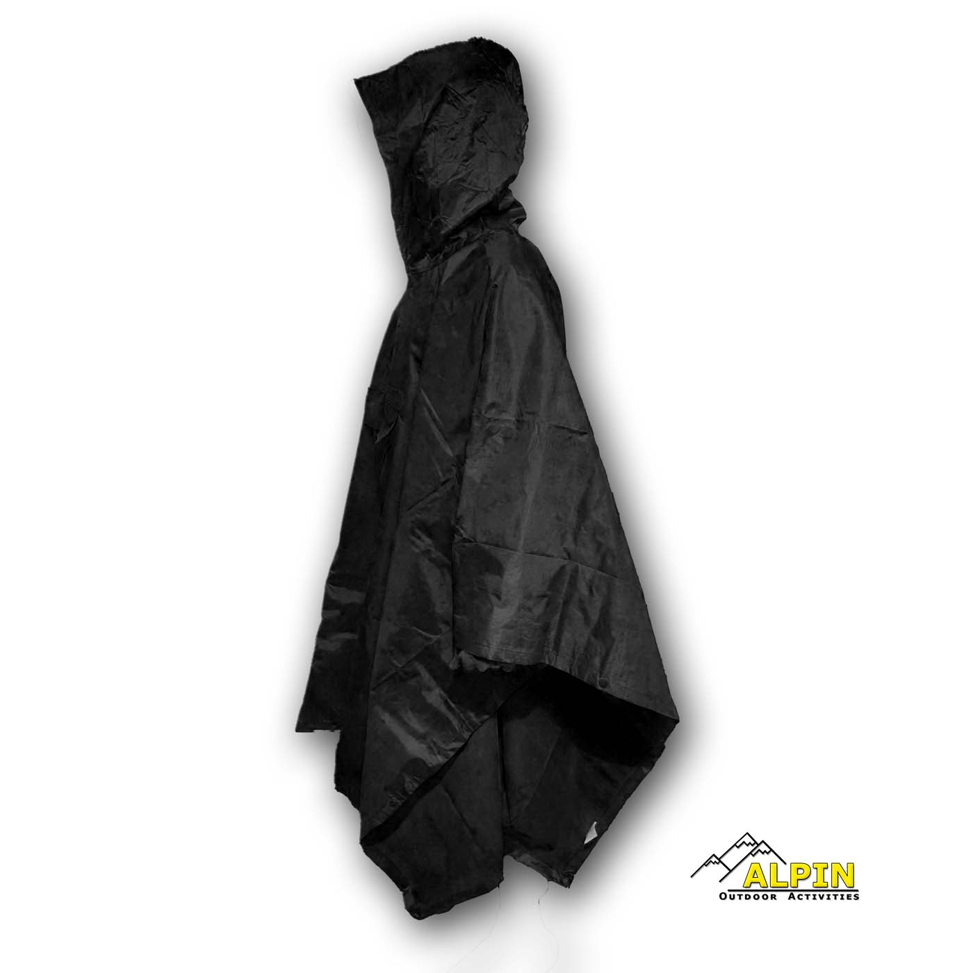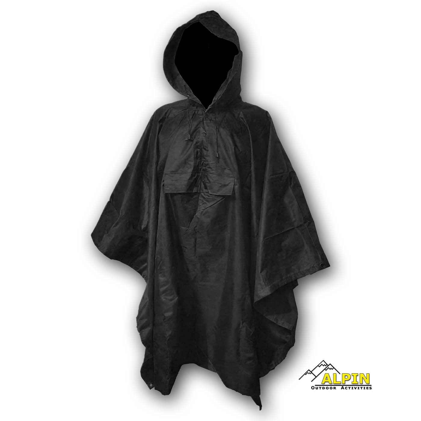 - Extremely waterproof (10,000 mm) black poncho and breathable: 6,000 gsm.