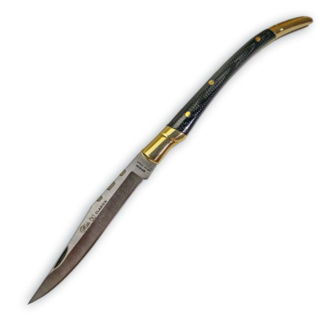 Σουγιάς Σειράς Clasica Miguel Nieto  Pocket-knife Clasica Miguel Nieto .Σουγιάς "Κόσμημα" με λεπίδα  από ανοξείδωτο χάλυβα υψηλής περιεκτικότητας σε άνθρακα ΑΝ-58. Ο σχεδιασμός του έχει γίνει εξ' ολοκλήρου στο εργαστήριο της Miguel Nieto στο Albacete της Ισπανίας.