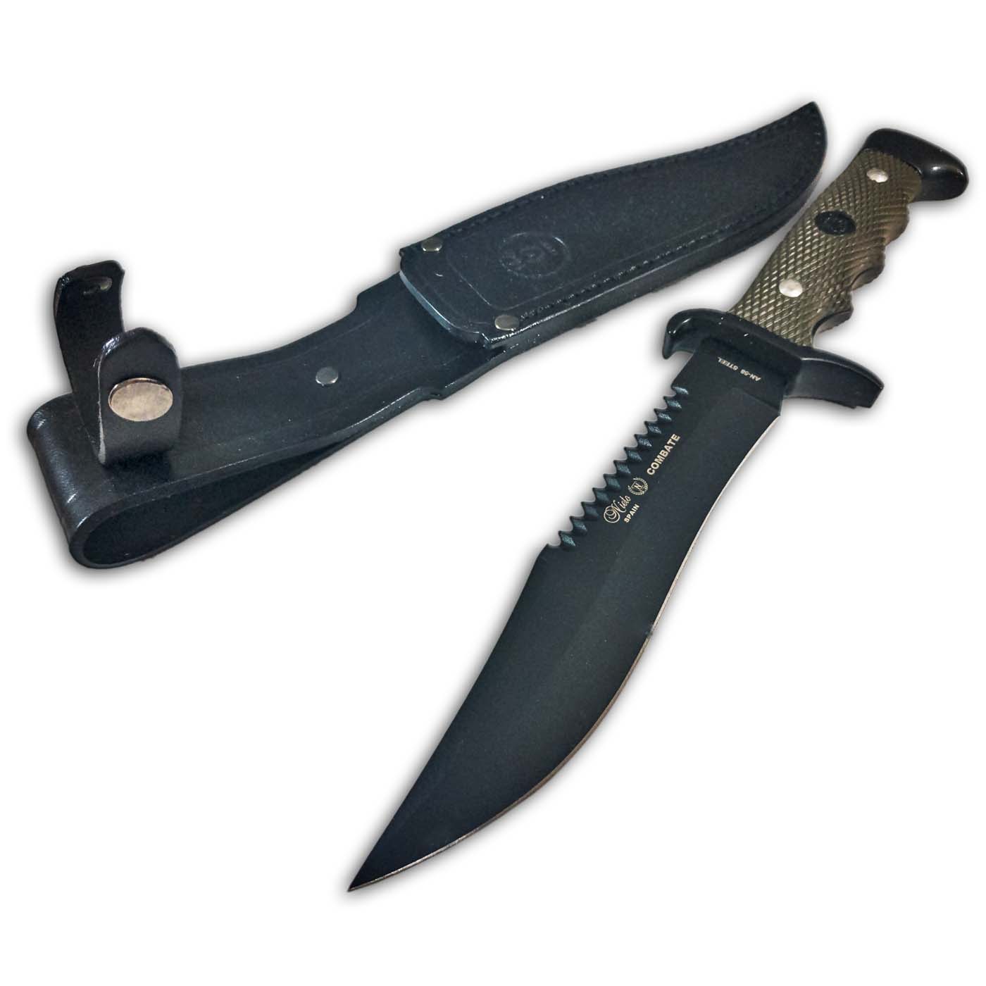 To μοντέλο Combate της εταιρίας Miguel Nieto είναι ένα μεγαλο και επιβλητικο μαχαιρι.  Η μαύρη λεπίδα τύπου νυχιού από χάλυβα ΑΝ-58 θα μείνει αιχμηρή σαν ξυράφι ακόμα και μετά από επαναλαμβανόμενη χρήση. Το χέρι σας θα αγκαλιάσει την εργονομική λαβή από ρητίνη δίνοντας τη στιβαρότητα που χρειαζεται. Περιλαμβάνει δερμάτινη θήκη σαν κι αυτές που μόνο η MIGUEL NIETO παραδίδει.