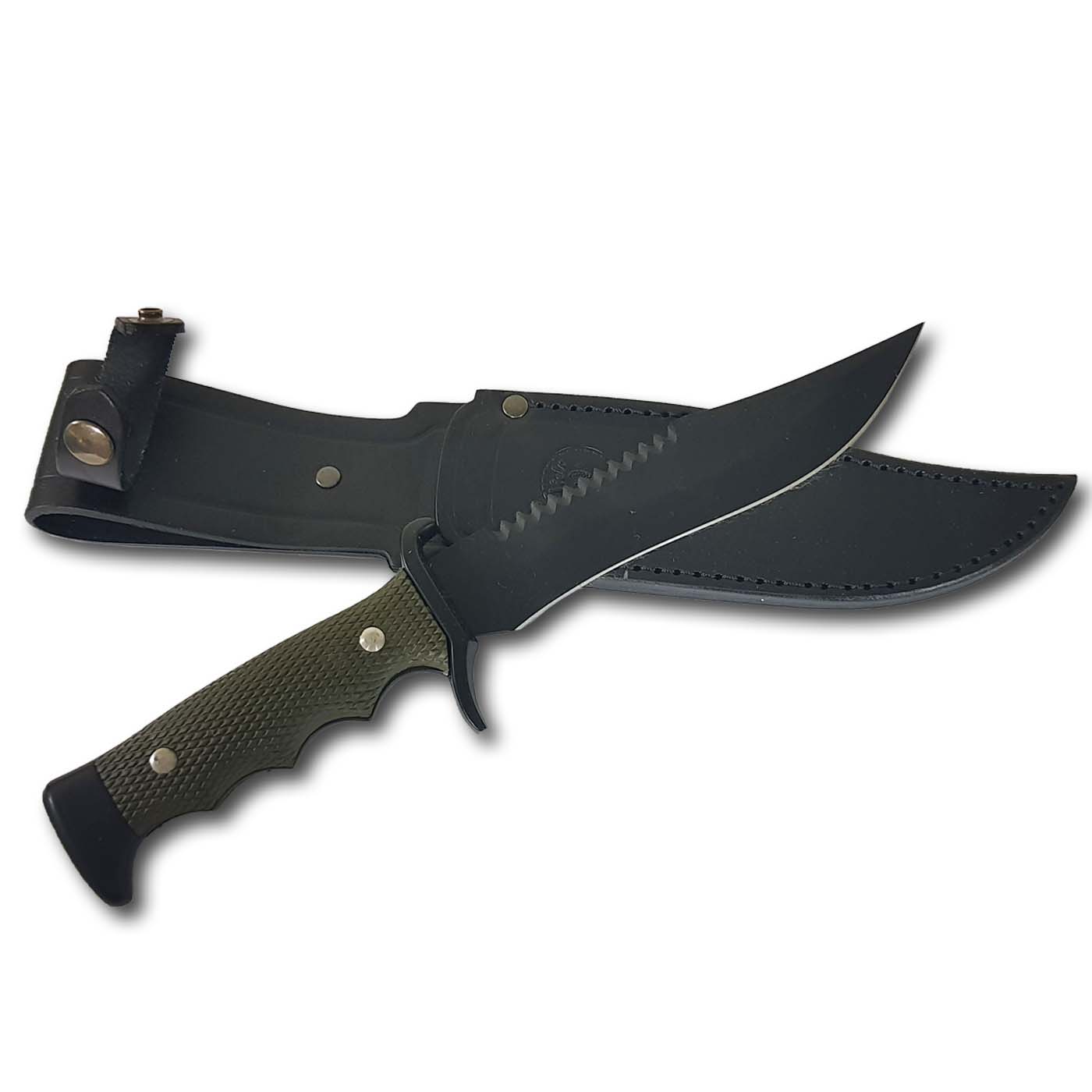 Μαχαίρι Επιβίωσης Combate με δερμάτινη θήκη.  Combate  knife to leather sheath. Για πρώτη φορά σε μαύρη λάμα για απόκρυψη σε κατάστασης νύχτας. Ο σχεδιασμός του έχει γίνει εξ'ολοκλήρου  στο εργαστήριο της Miguel Nieto στο Albacete της Ισπανίας.