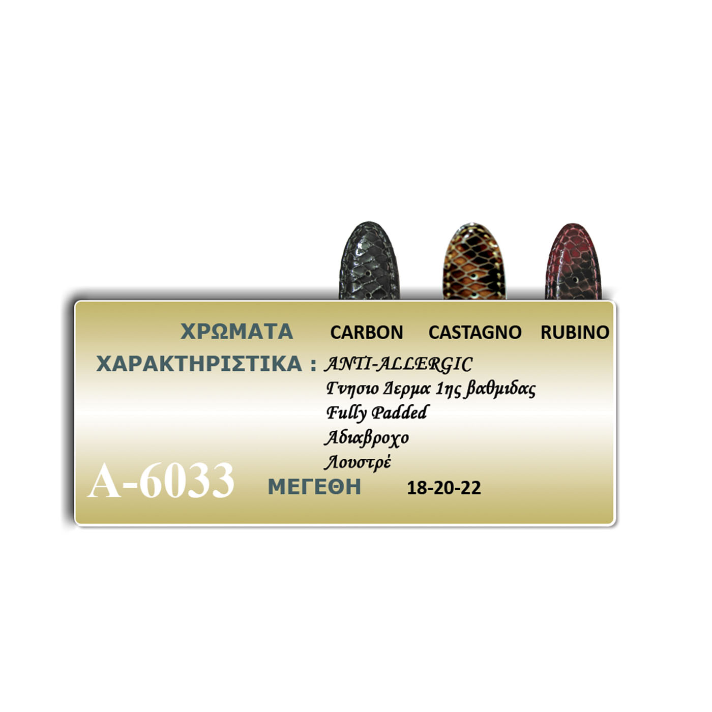 • Χαρακτηριστικά : anti-allergic / fully padded / αδιάβροχο / γνήσιο δέρμα 1ης βαθμίδας / λουστρέ