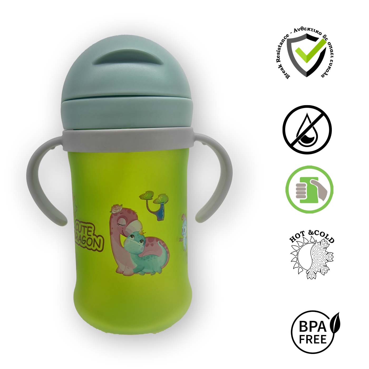 - Διαθέτει ένα ευλύγιστο νέου καλαμάκι από σιλικόνη. 1) εξασφαλίζει μηδέν διαρροές ακόμα και αν ανοίξει τυχαία ή από πτώση το προστατευτικό καπάκι. 2)Αρκετά πιο πλατύ και ανθεκτικό από τα συνηθισμένα καλαμάκια, εξασφαλίζει εύκολη και αβίαστη ροή νερού. (* διατίθενται ανταλλακτικά) 3) Σχεδιασμένο ώστε το καλαμάκι να φτάνει εύκολα στο υγρό και το παιδί σας να πίνει σε φυσική θέση