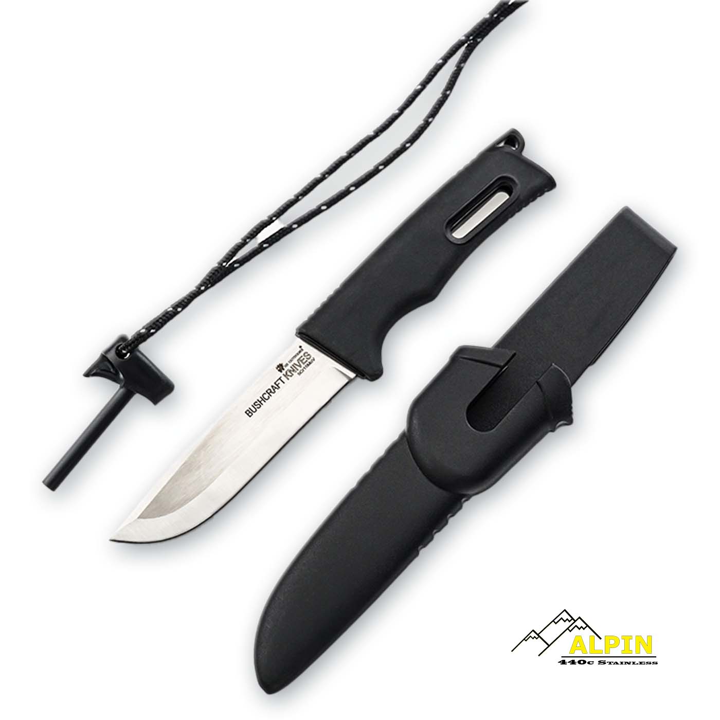 Buschcraft Light Tactical Knife + Sharpener + Sparkler: Ελαφρύ Μαχαίρι Buschcraft ΤrailΒorn 4+ Σπινθηριστής Black