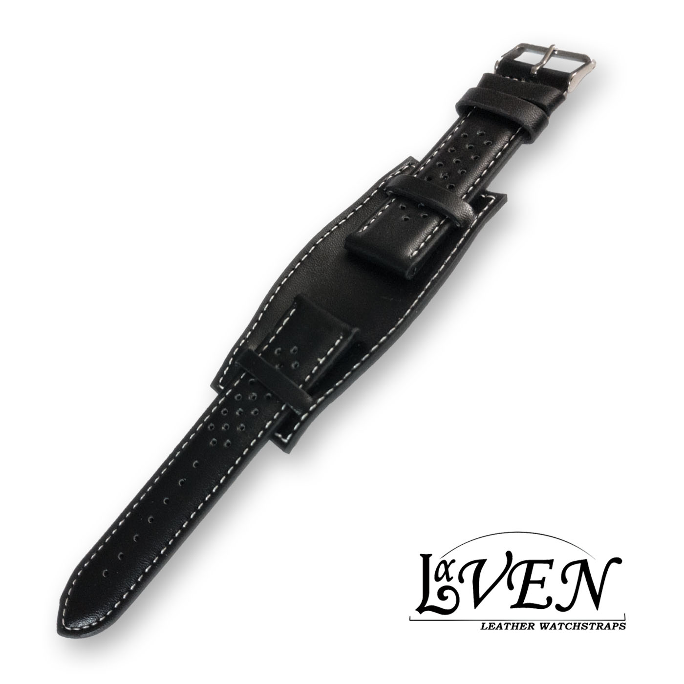 Leather Wrist Strap Black\White stitching LaVen |